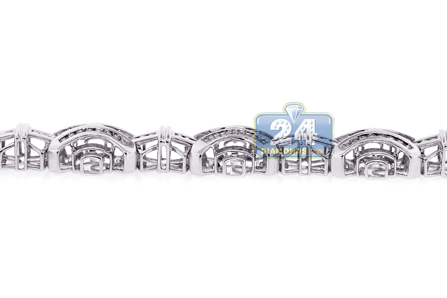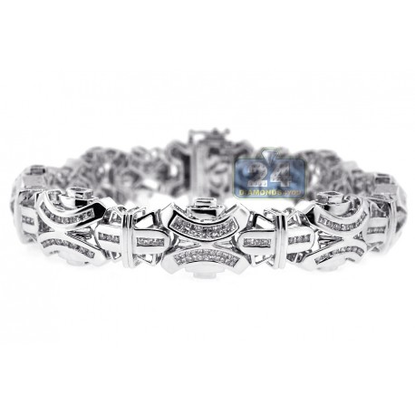 14K White Gold 4.31 ct Diamond Link Mens Bracelet 8 1/2 Inches