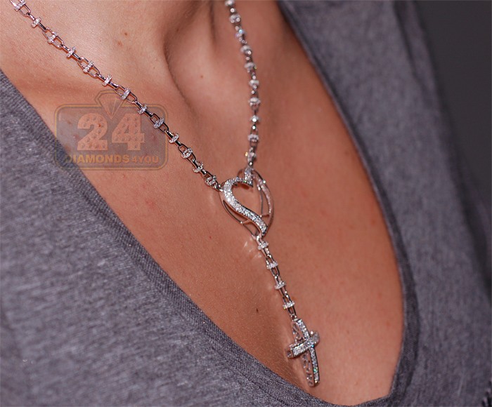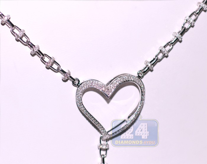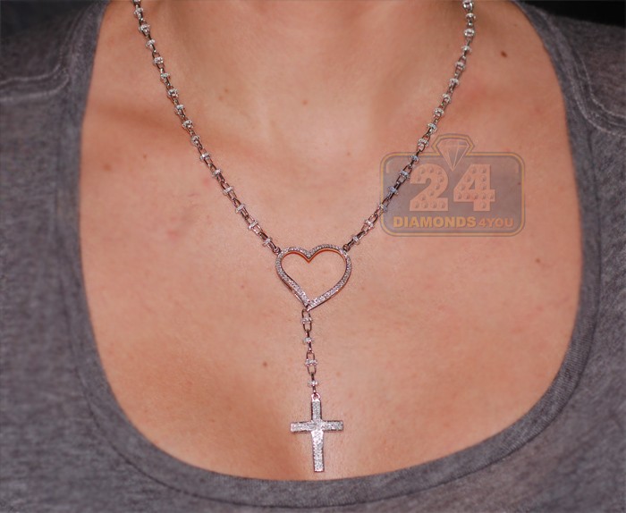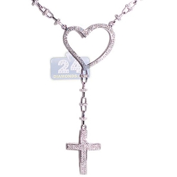 14K White Gold 4.39 ct Diamond Heart Womens Rosary Necklace