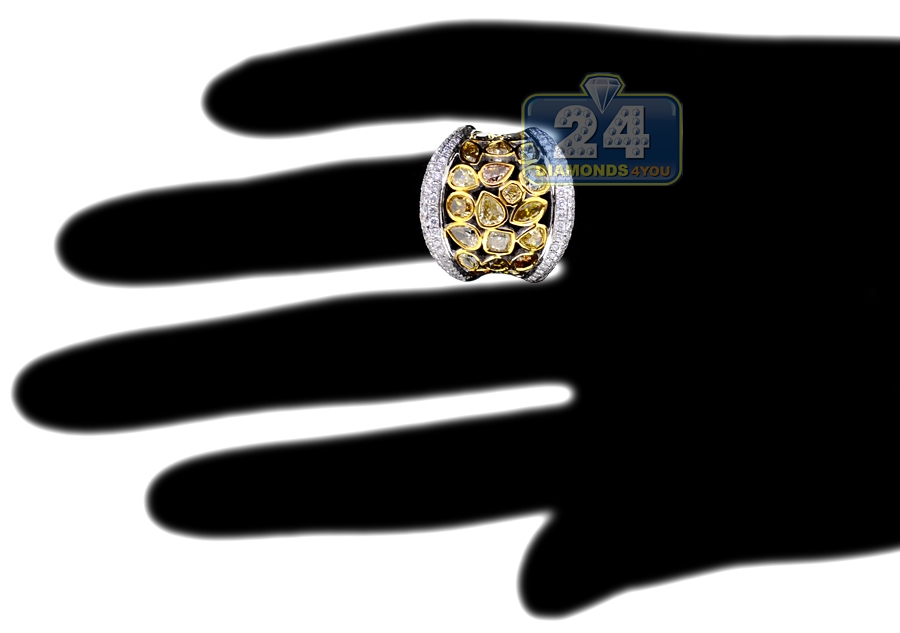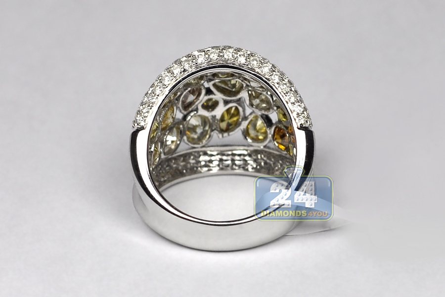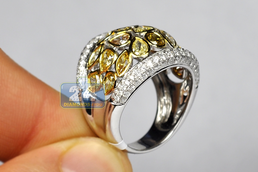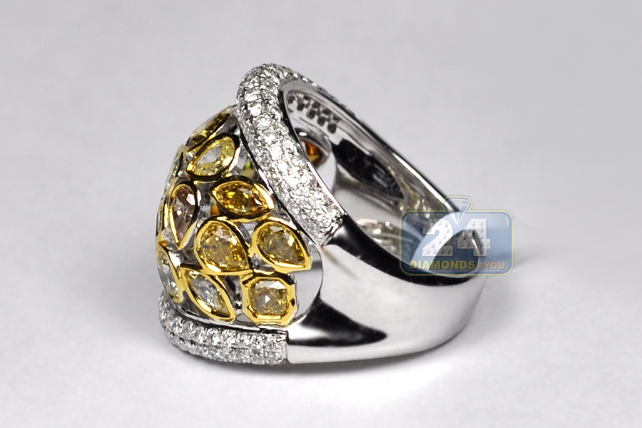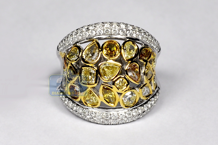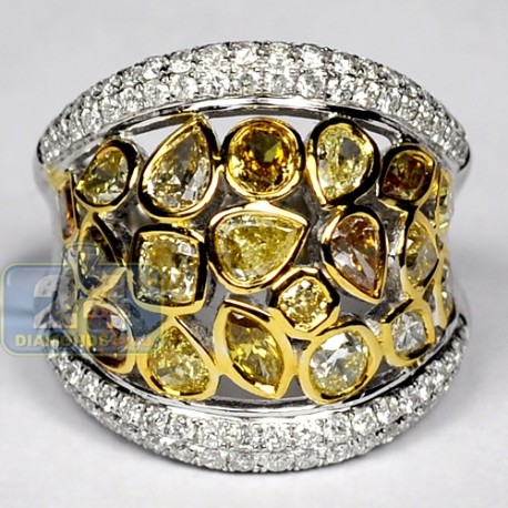14K White Gold 4.75 ct Fancy Yellow Diamond Womens Wide Ring