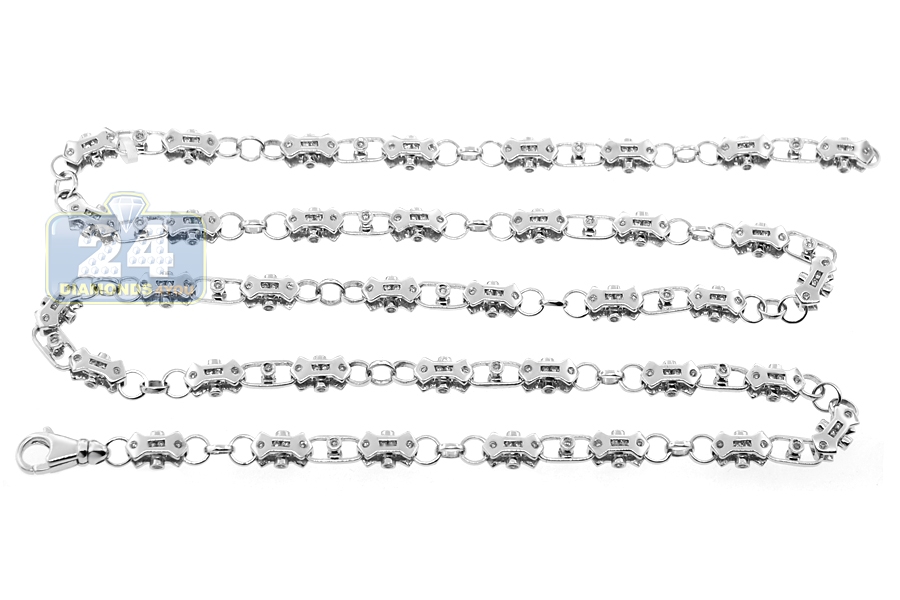 14K White Gold 4.84 ct Diamond Link Mens Chain 6.5 mm 30 Inches