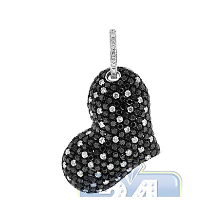 14K White Gold 4.02 ct Black Diamond Heart Shape Pendant
