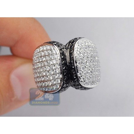 Welcome to the world of abstraction and glamour! Our fancy shaped cocktail ring is expertly designed by professionals in cool 14k white gold with high polished finish, and skillfully encrusted with genuine black and white diamonds totaling 4.05 carat. All these brilliants are hand picked for the perfect match, white stones feature G-H color and SI1-SI2 clarity which makes them eye clean and sparkling. Chic, elegant, flashy in one piece!