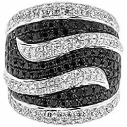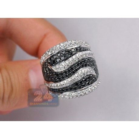 14K Gold 4.06 ct Black White Diamond Wave Womens Ring