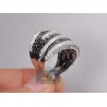 It is your time to sparkle with this breathtaking wave shaped band! Our jewel features natural back and white round cut diamonds masterly handset in a wave pattern as well. The white precious stones are beautifully eye clean and sparkling, with G-H color and SI1-SI2 color, and perfectly contrasting with black brilliants. Wide sized setting is professionally handmade of lustrous 14k white gold with shiny polished finish. High style jewelry for a high profile event!