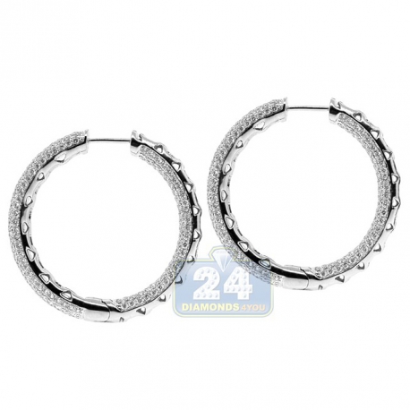 14K White Gold 4.21 ct Diamond Pave Round Hoop Earrings