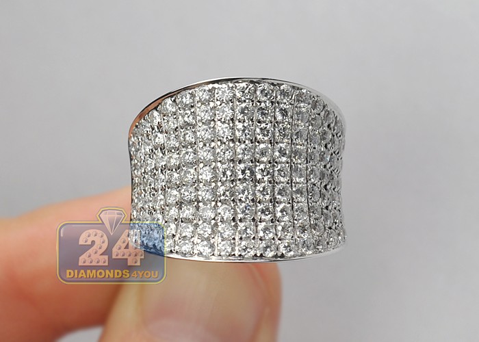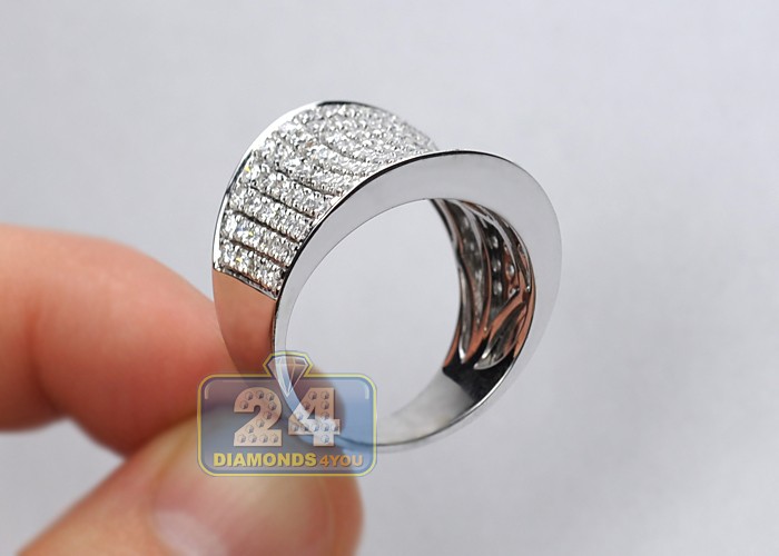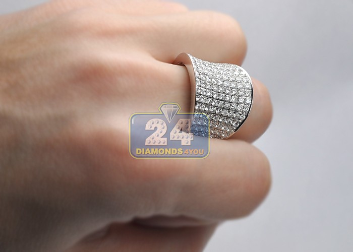 14K White Gold 4.25 ct Diamond Wave Shaped Mens Ring