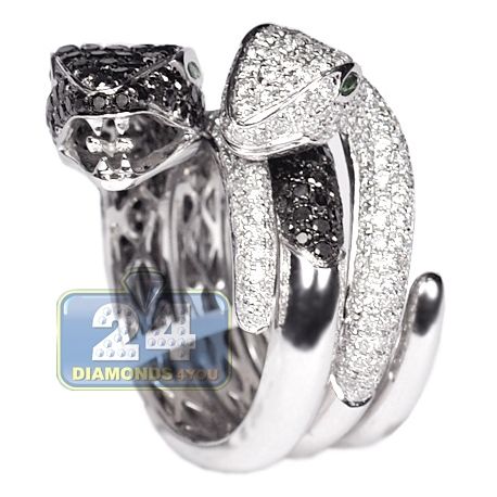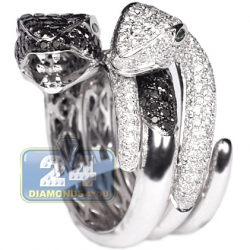 14K Gold 4.25 ct Black White Diamond Double Snake Womens Ring