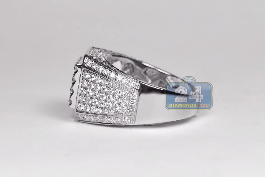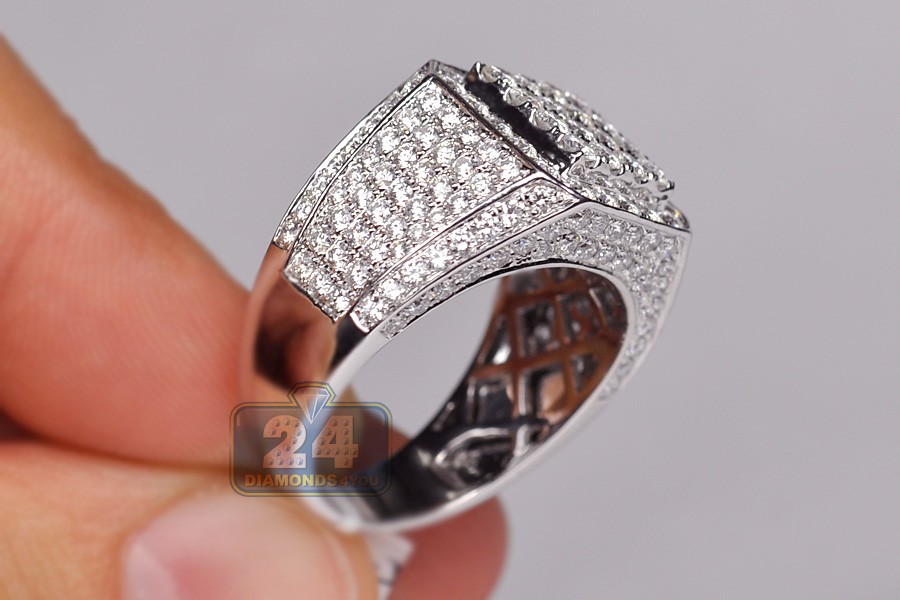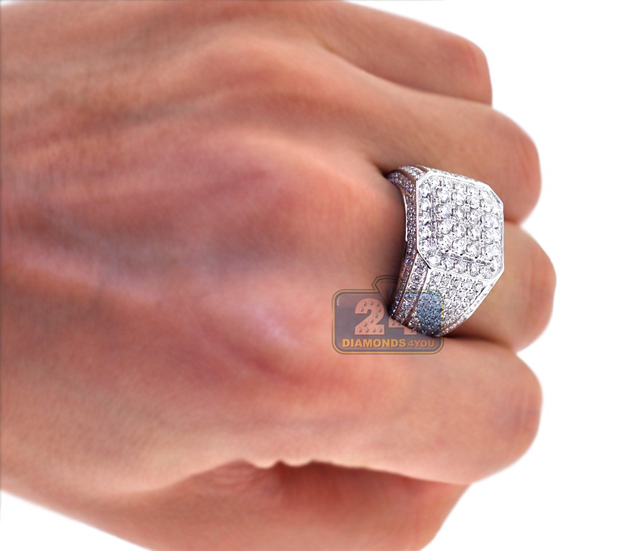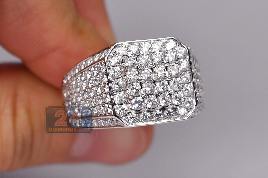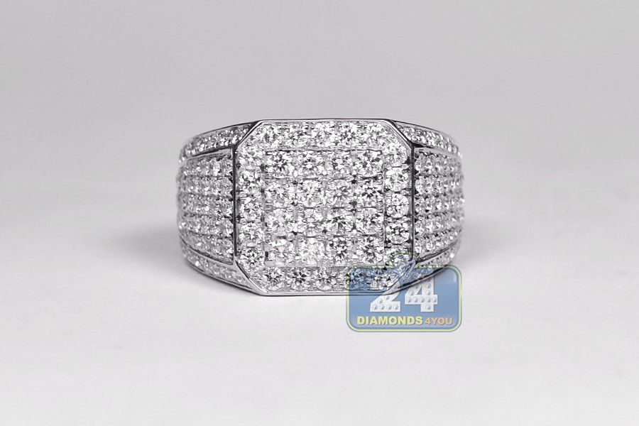 14K White Gold 4.32 ct Iced Out Diamond Mens Square Ring