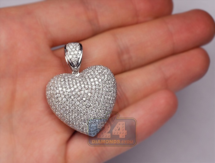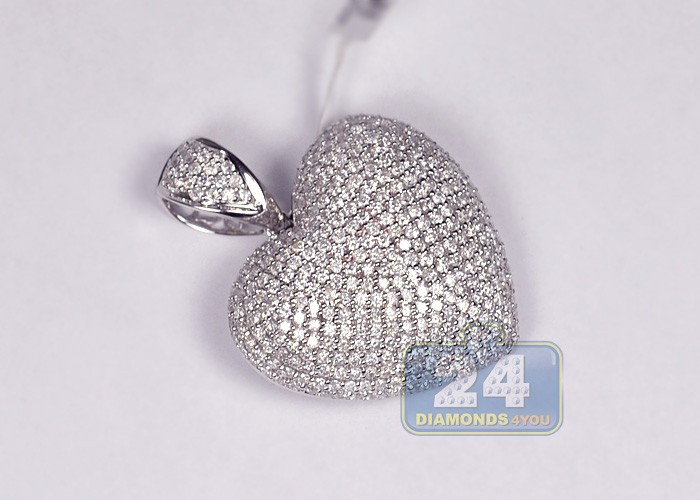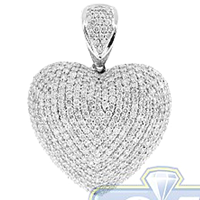 14K White Gold 4.32 ct Iced Out Diamond Womens Heart Pendant