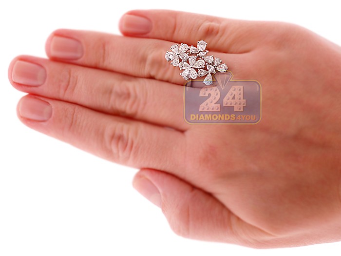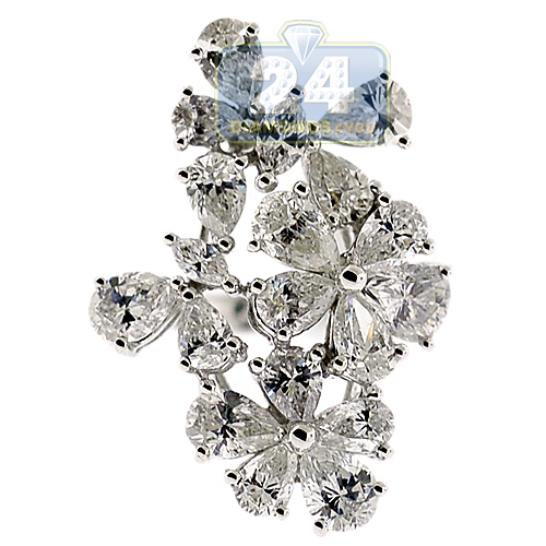 14K White Gold 4.33 ct Fancy Marquise Diamond Flower Ring