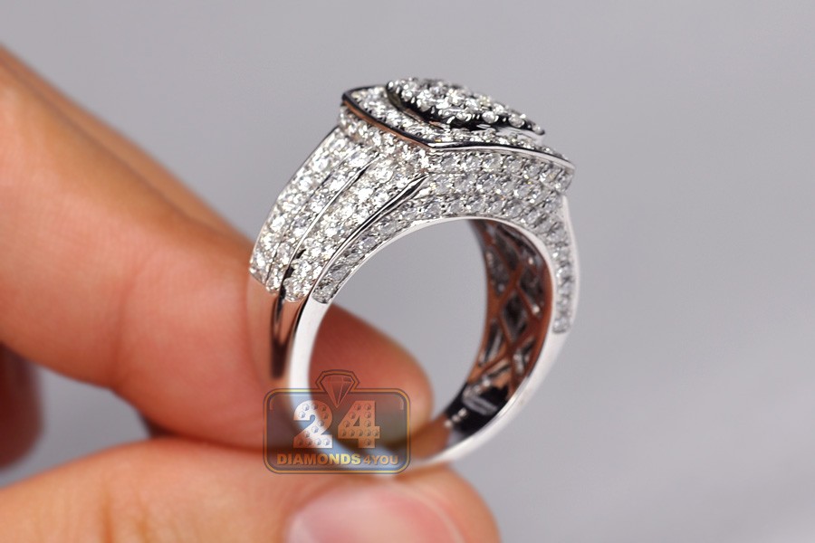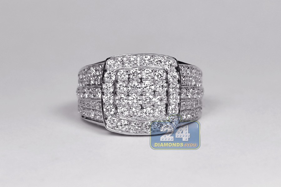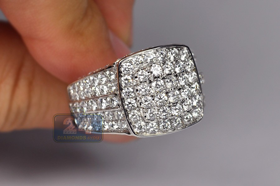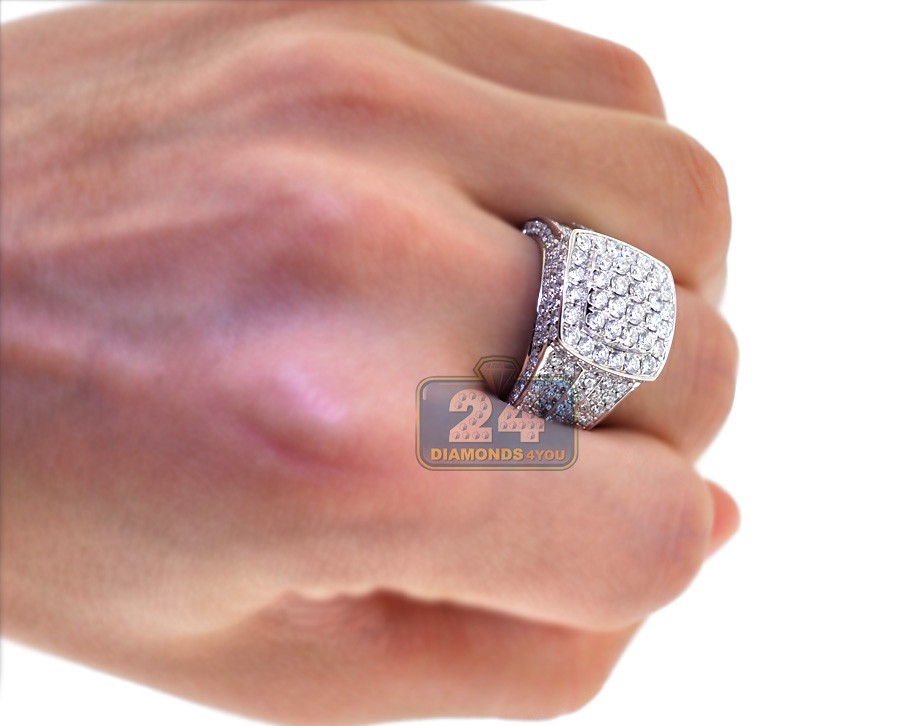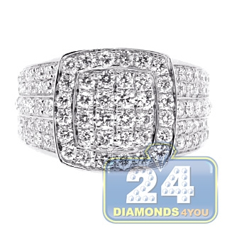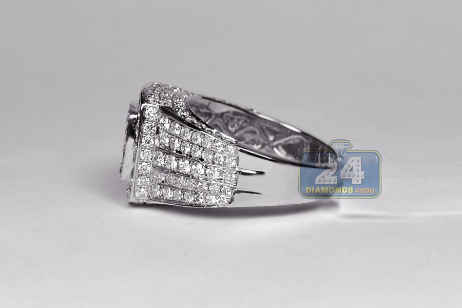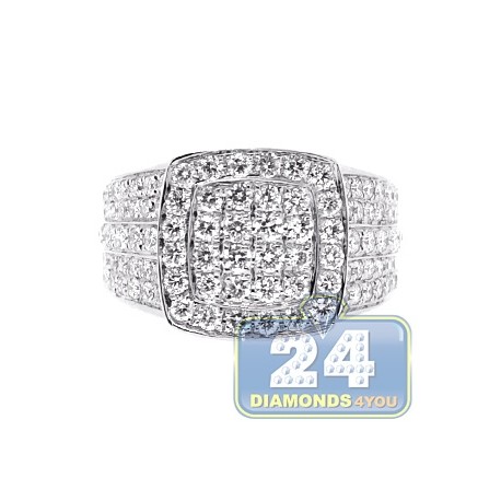 14K White Gold 4.44 ct Diamond Mens Square Shape Ring