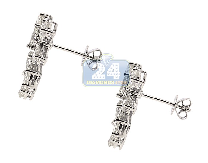 14K White Gold 4.49 ct Diamond Flower Womens Stud Earrings