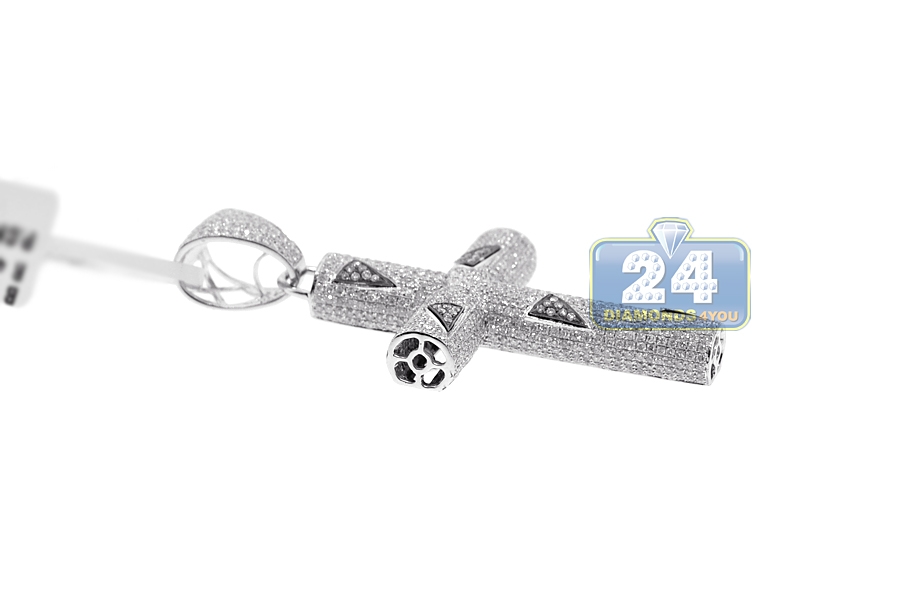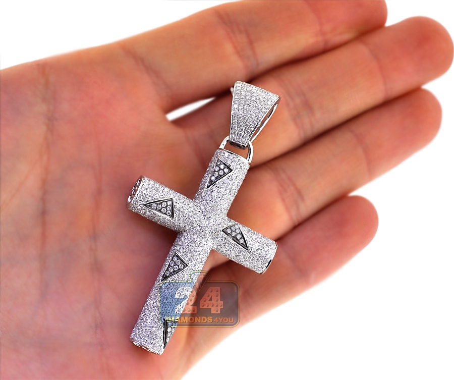 14K White Gold 4.55 ct Diamond Mens Cross Pendant