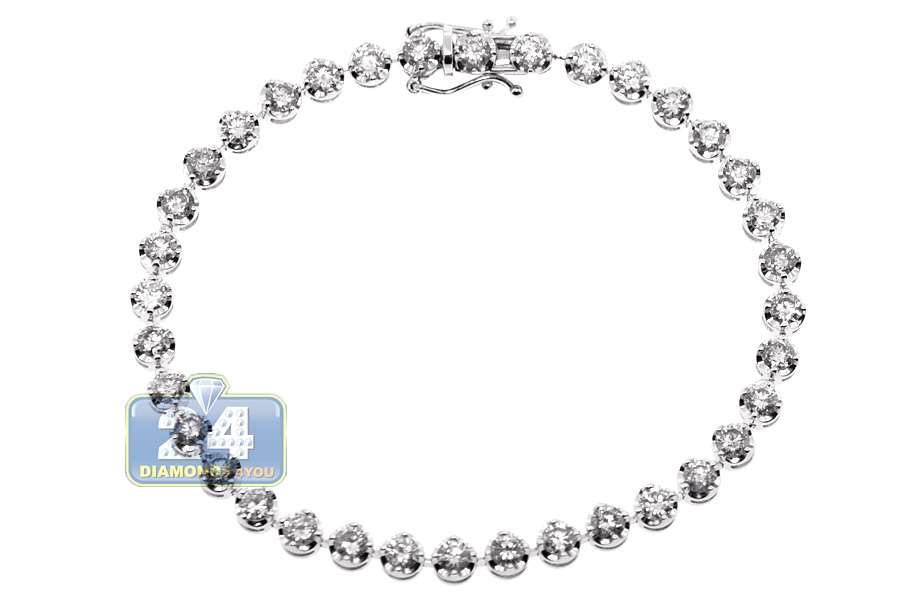 14K White Gold 4.55 ct Diamond Womens Halo Tennis Bracelet