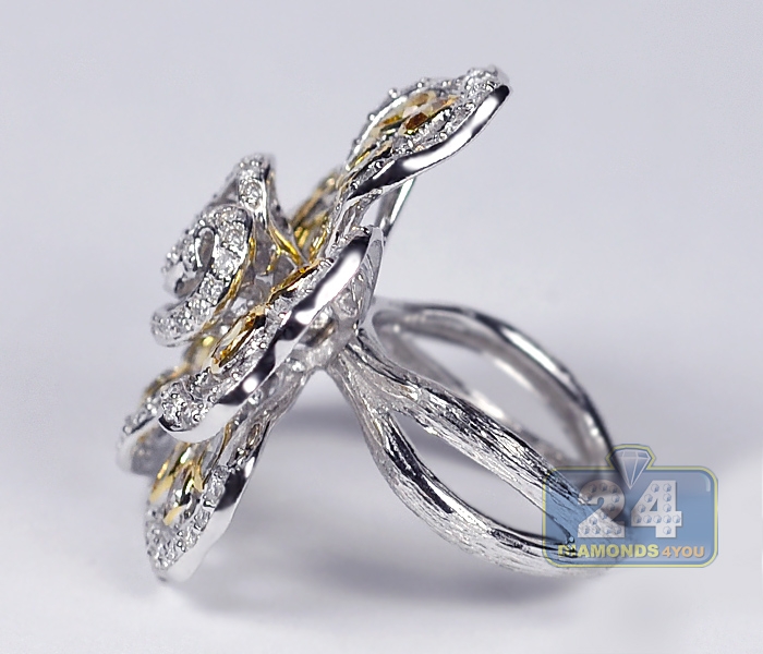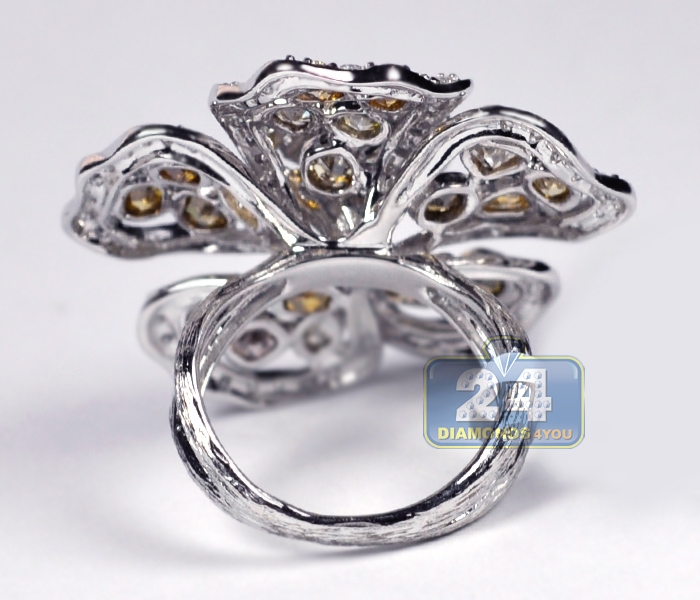 14K White Gold 4.69 ct Fancy Diamond Womens Flower Ring