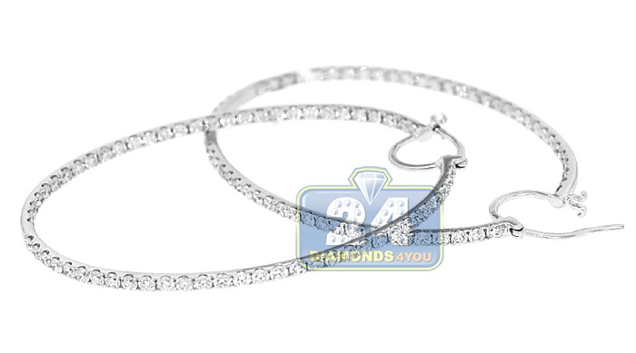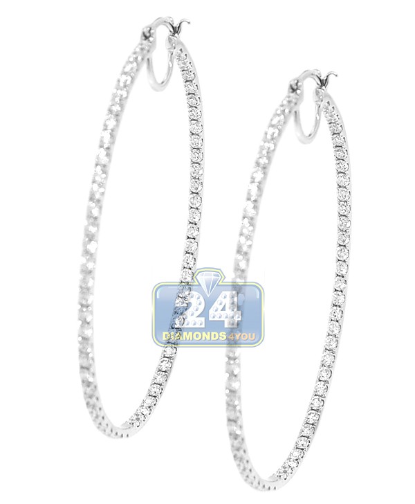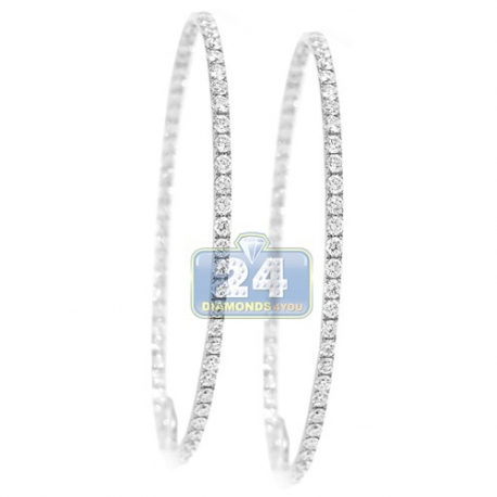 14K White Gold 4.88 ct Diamond Round Hoop Earrings 2 3/8 Inch