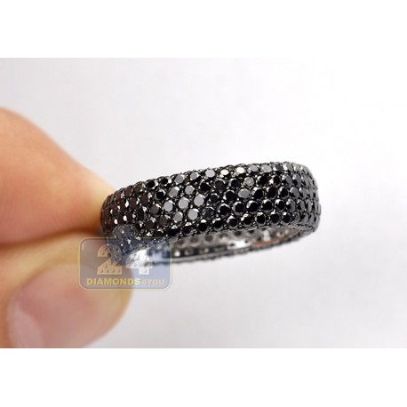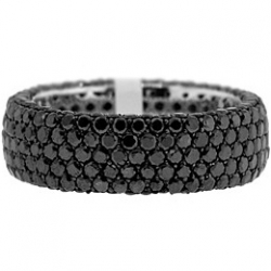 Black diamond jewelry is always in fashion and can be perfectly matched with any informal outfit and even a cocktail dress! Our luxurious women's ring is artfully studded with five rows of stunning black round cut diamonds totaling 5.00 carat. The impressive all the way around diamond design includes the band's sides as well, and makes the ring beautifully shine at day and night!
