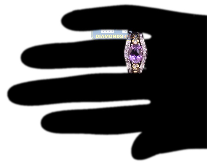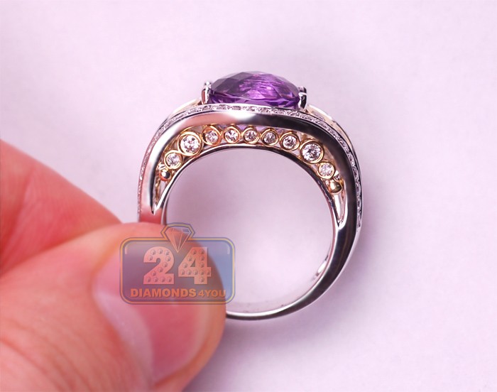14K White Gold 5.10 ct Amethyst Diamond Womens Ring