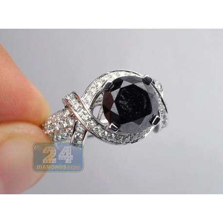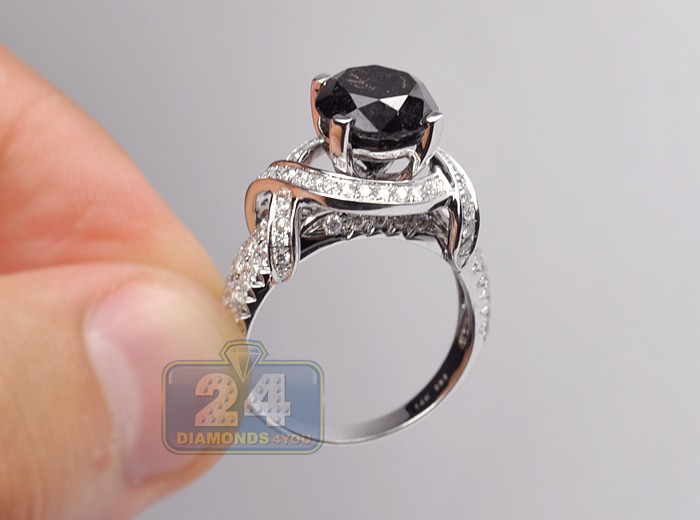 14K White Gold 5.45 ct Black Diamond Engagement Ring