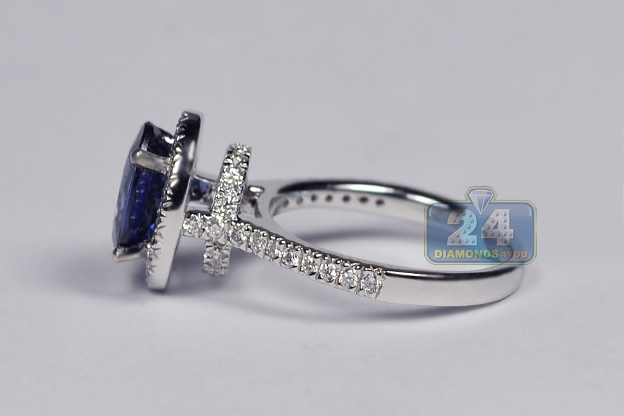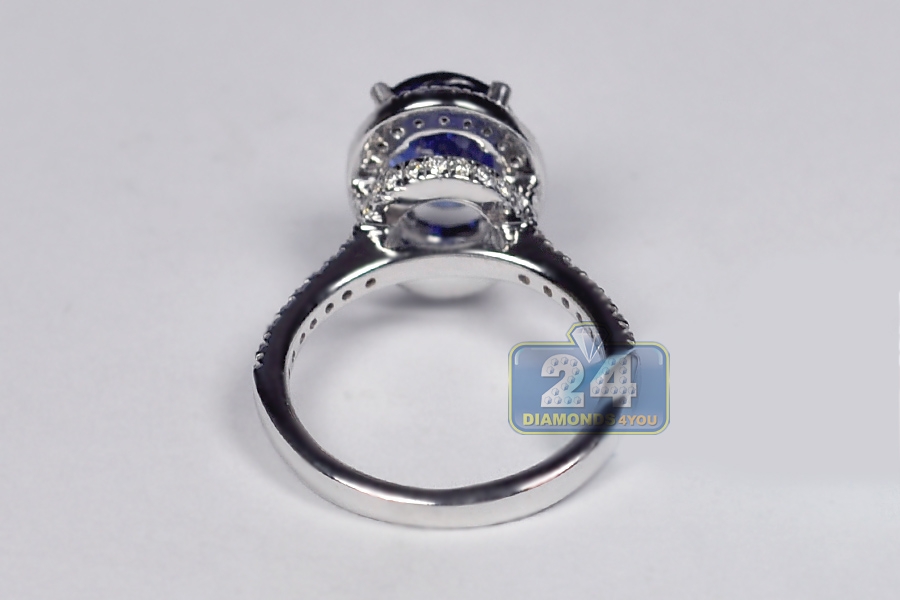 14K White Gold 5.95 ct Blue Sapphire Diamond Womens Ring