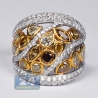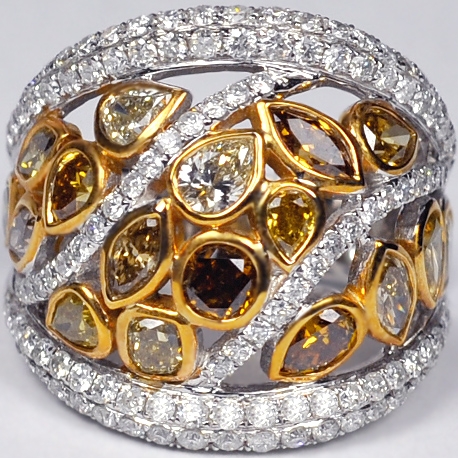 Elegant and truly royal looking, our stunning ring with plenty of oval & pear cut natural fancy diamonds is a real work of art! Gorgeously handmade of cool 14 white gold with high polished finish, it also features classic icy white round cut diamonds of G-H color and VS2-SI1 clarity. Wide size, stunning combination of colors, genuine materials and exceptional craftsmanship with the antique styled design making this ring is a breathtaking piece! Draw everyone's attention to your lovely fingers with this beauty!
