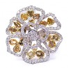 14K White Gold 5.10 ct Fancy Yellow Diamond Vintage Flower Ring