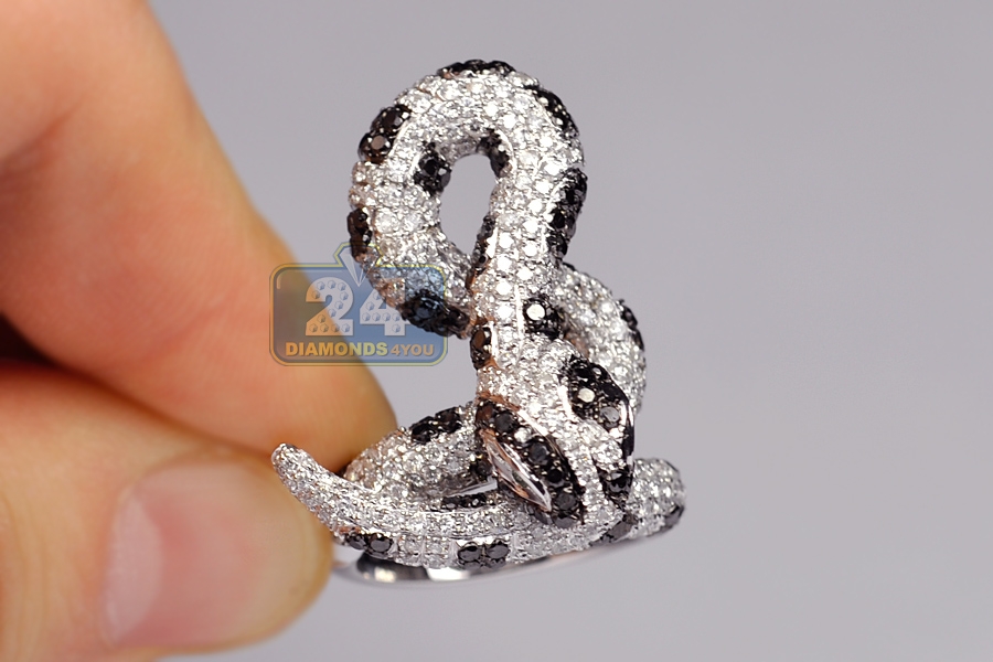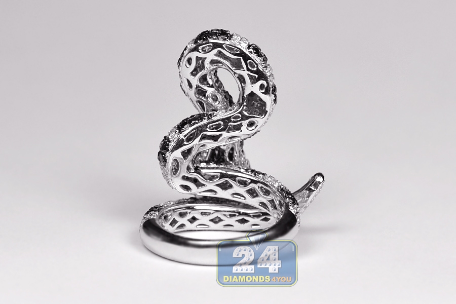 14K White Gold 5.12 ct Black Diamond Womens Coil Snake Ring