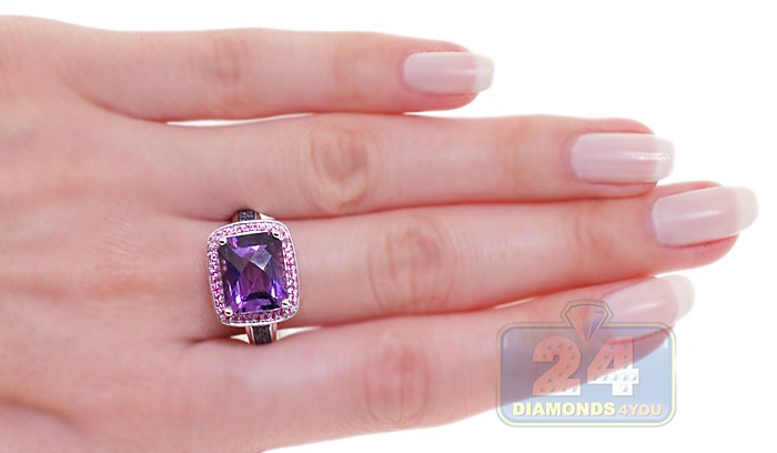 14K White Gold 5.13 ct Amethyst Sapphire Halo Cocktail Ring