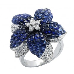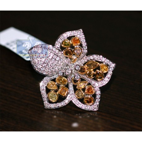 14K White Gold 5.15 ct Multicolored Diamond Womens Flower Ring