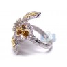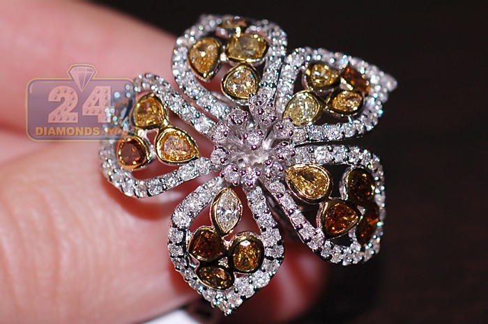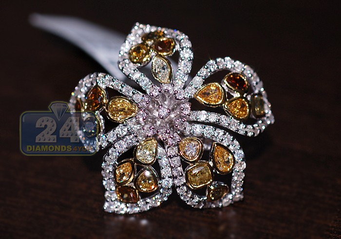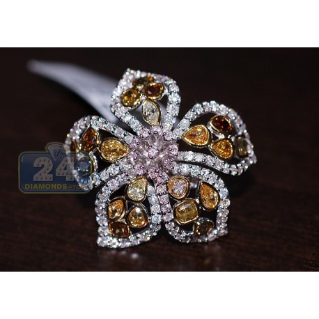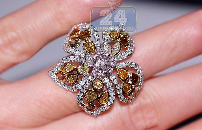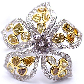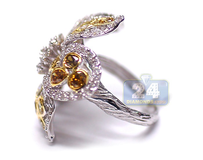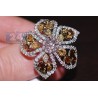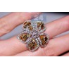 14K Gold 5.16 ct Fancy Yellow Brown White Diamond Flower Ring