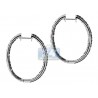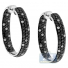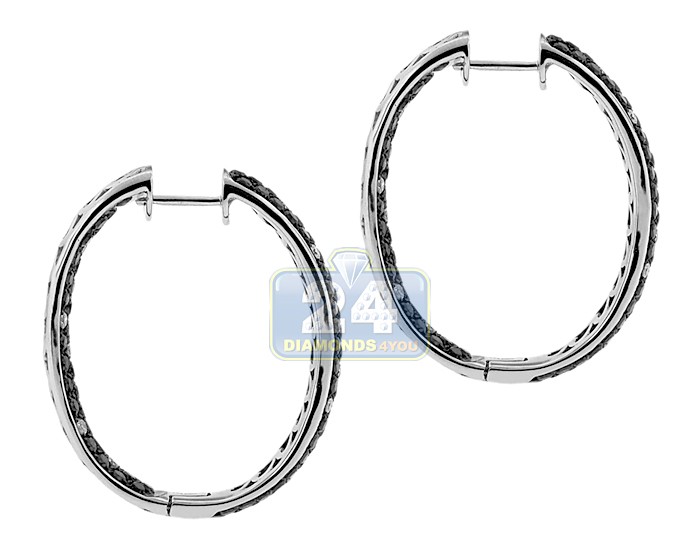 Elegant and sparkling, these diamond hoops feature a galaxy of black and icy white diamonds. These pair of smashing earrings are crafted from 14k white gold. Three inside and outside rows of genuine diamonds are totaling to 5.20 carats. Our women's diamond hoops measure 33 mm in height and 6.5 mm in width. For any occasion, these simple, classic diamond hoops will get you there in style.
