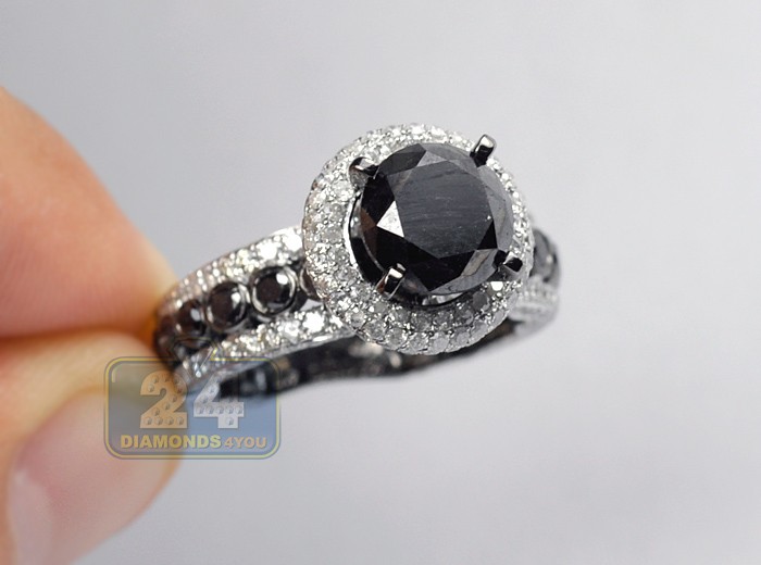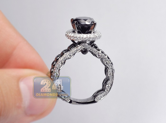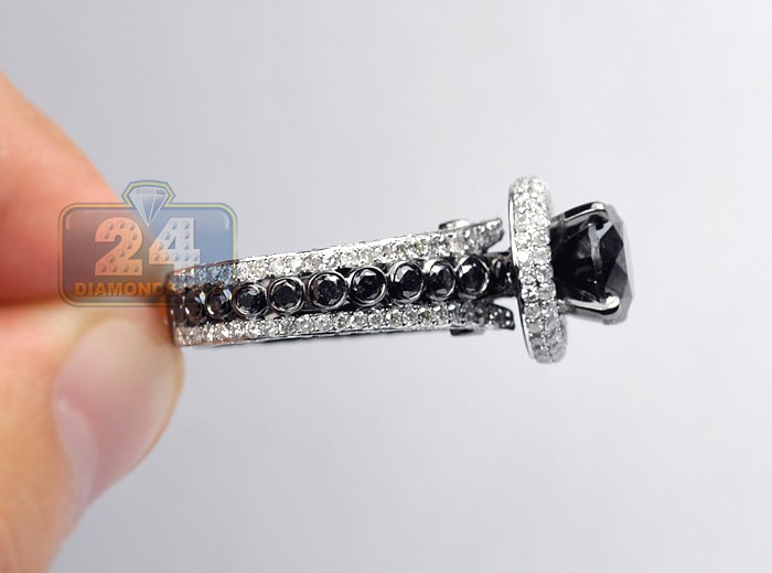 14K White Gold 5.21 ct Black Diamond Womens Engagement Ring