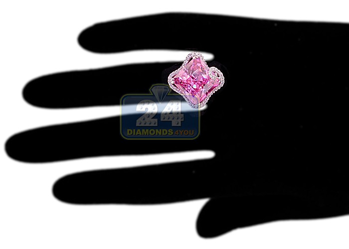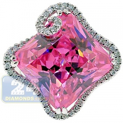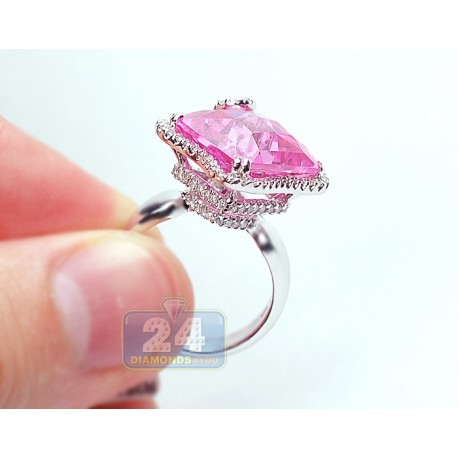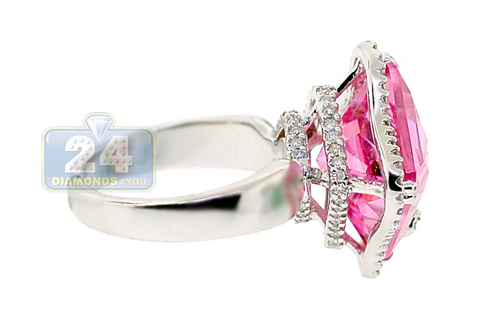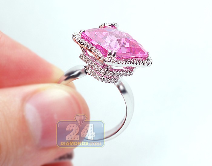 14K White Gold 5.81 ct Pink Quartz Gemstone Diamond Ring