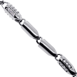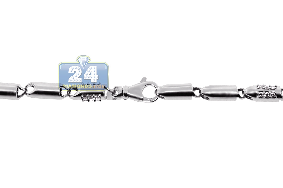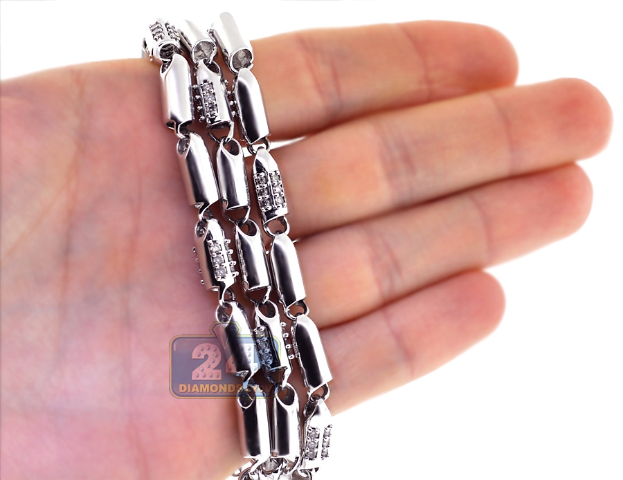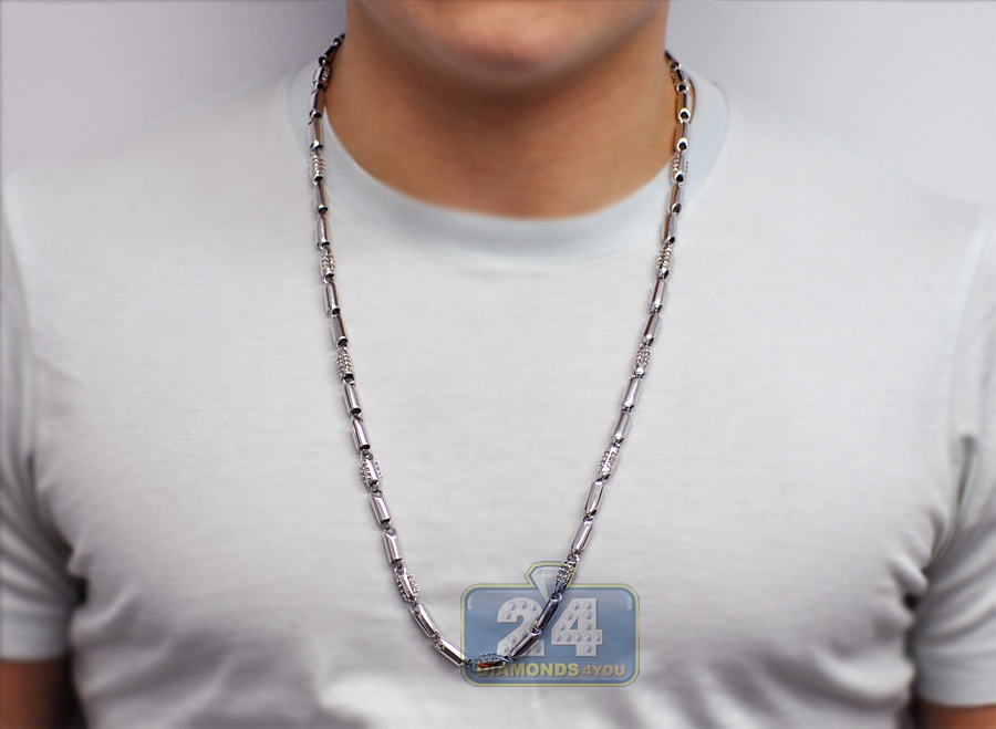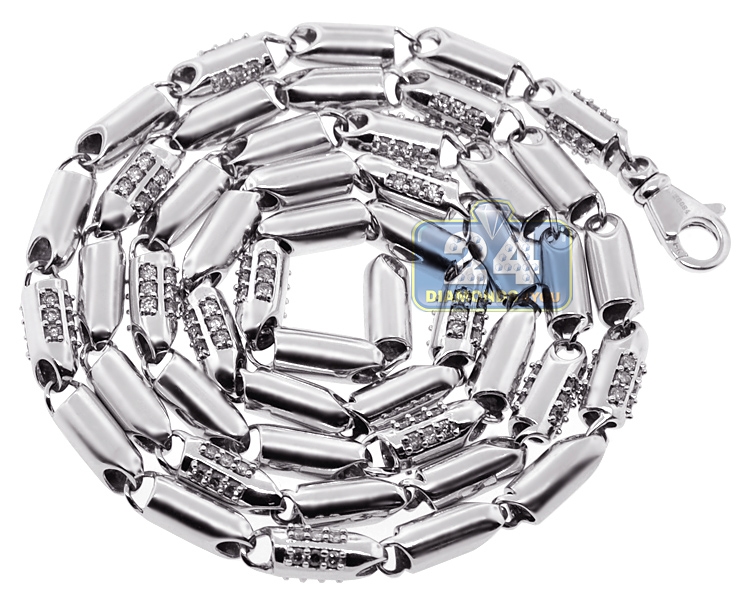 14K White Gold 5.85 ct Diamond Bullet Bead Mens Chain 30 Inches