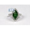 14K White Gold 5.87 ct Marquise Emerald Diamond Cocktail Ring