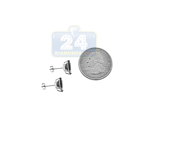 14K White Gold 6.00 ct Black Square CZ Push Stud Mens Earrings 8 mm