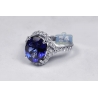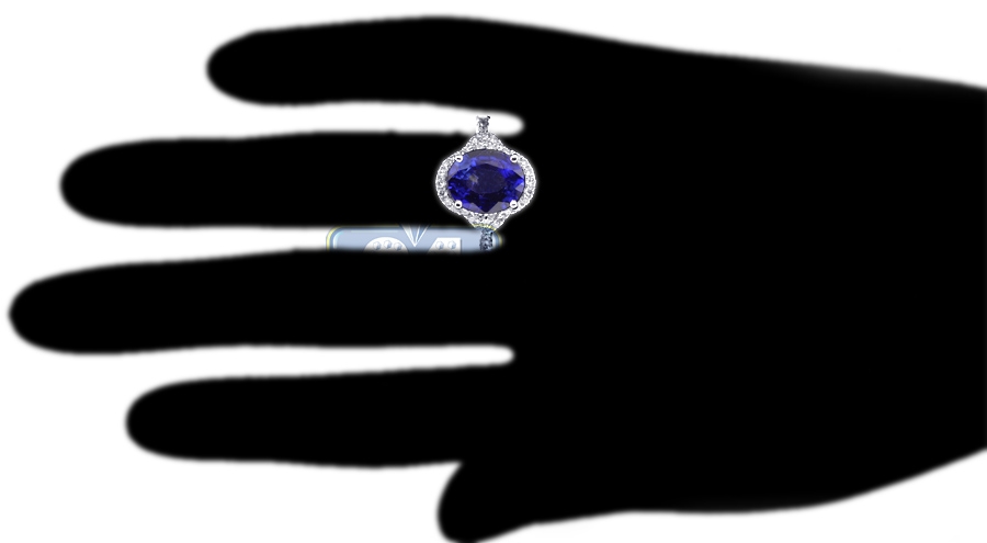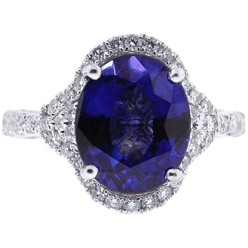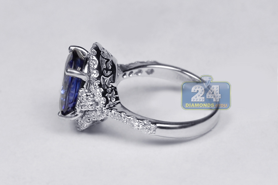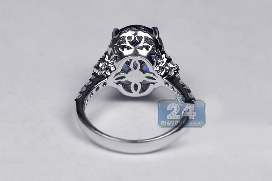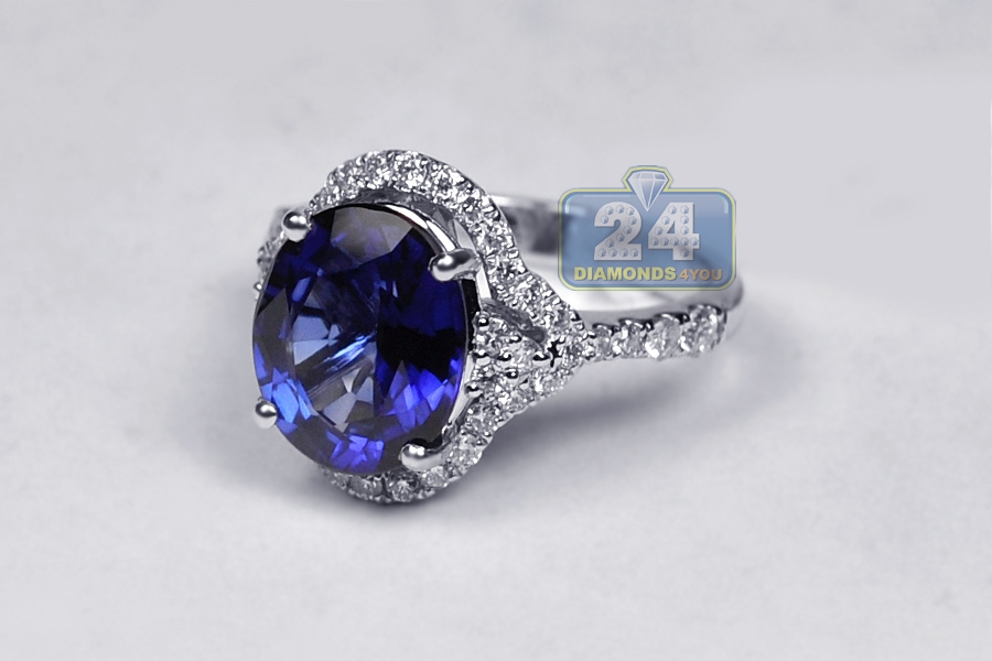 14K White Gold 6.25 ct Oval Sapphire Diamond Womens Ring