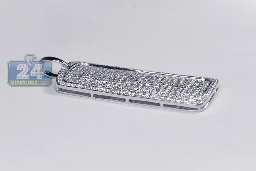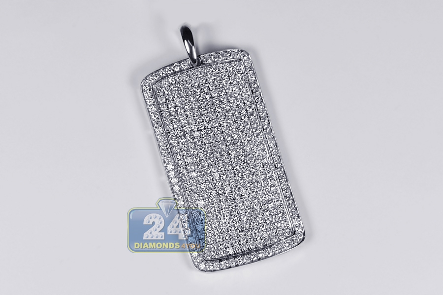14K White Gold 6.86 ct Diamond Mens Dog Tag Pendant