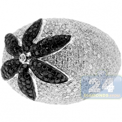 14K White Gold 6.05 ct Black Diamond Flower Womens Dome Ring