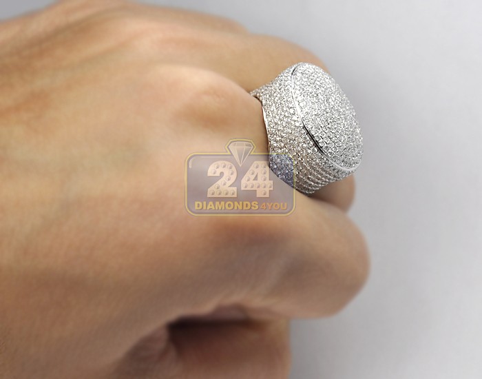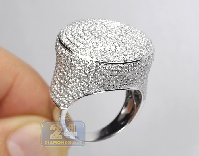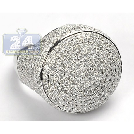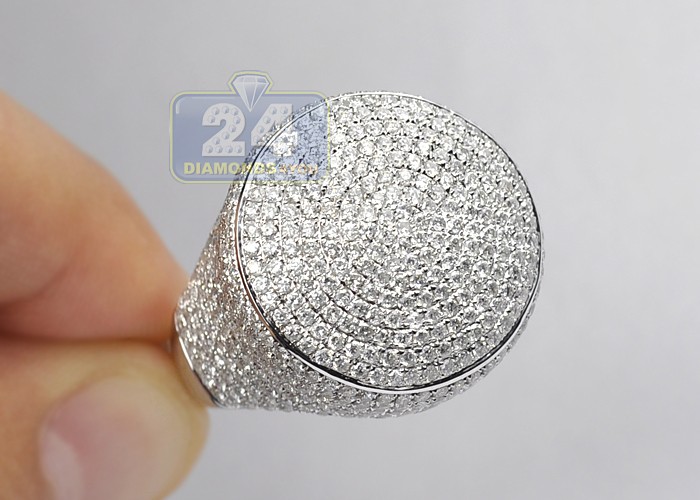 14K White Gold 6.29 ct Diamond Pave Mens Round Signet Ring