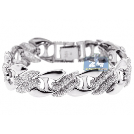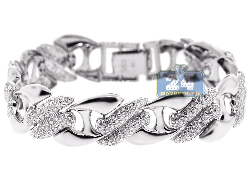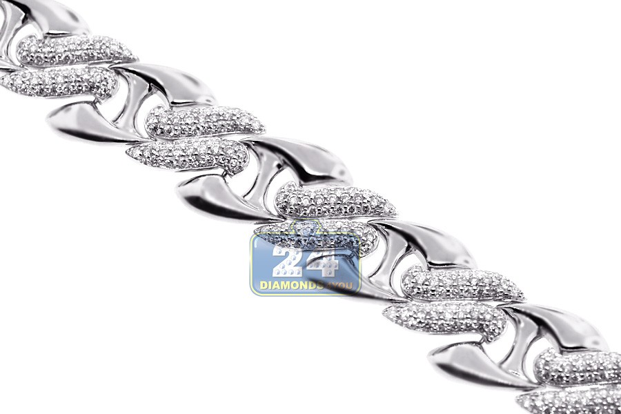Chic and stylish, this women's diamond bracelet will enhance any look! It's artfully handmade of cool 14 karat white gold, and highly polished to add ultra smooth feel. Our fancy mariner bracelet is paved with 6.31 carats of icy white round brilliant-cut genuine diamonds. The piece of jewelry features 8.5 inches in length, 15 mm in width; and secured by jewelry clasp. Any modern woman would adore this diamond link bracelet!