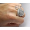 14K White Gold 6.43 ct Round Cut Diamond Mens Signet Ring
