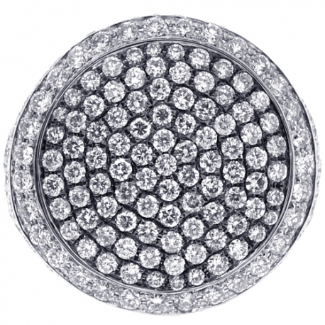 Truly impressive and luxurious, our exclusive ring is so special! It is professionally handmade of cool 14k white gold, finished with shiny polish, and expertly handset with 6.43 carats of genuine round cut diamonds. The center of the ring is beautifully covered with black rhodium to add an exotic touch. If you are looking for something unique, this would be the right choice!