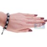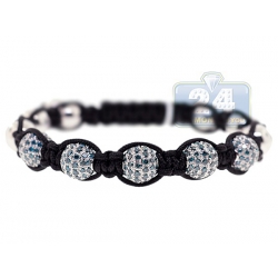 This versatile shambala style bracelet features 5 gorgeous 14 karat white gold beads covered with heavenly blue stunning diamonds in the center and 8 high polished gold beads accented with 2 sparkling blue diamonds on each bead as well. These gorgeous balls are tied together with black braided string. Each bead measures 10 mm in width. Very comfortable and easy pull closure makes this stunning diamond bead bracelet easy on and off. Stylish and unique at the same time this bracelet is great for everyday wear.