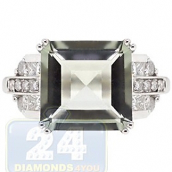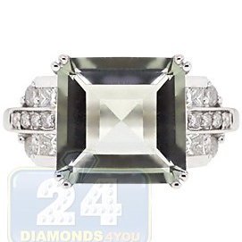 14K White Gold 7.15 ct Green Amethyst Diamond Womens Ring