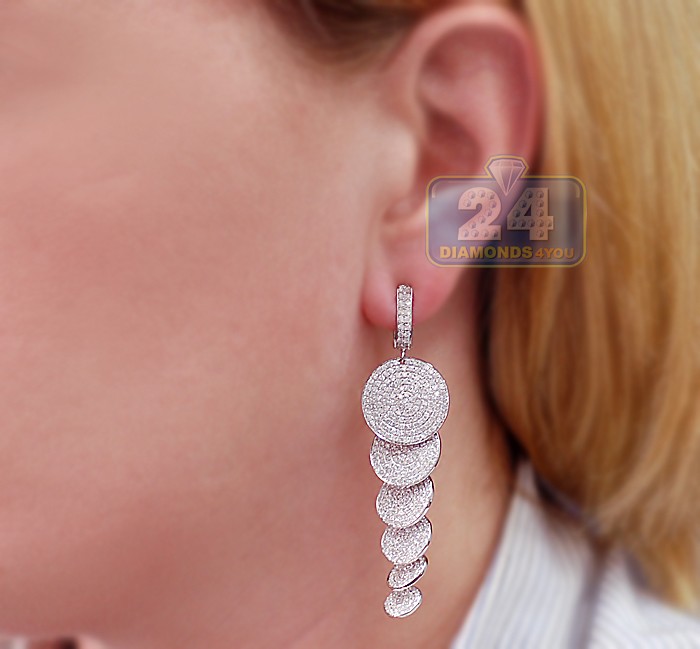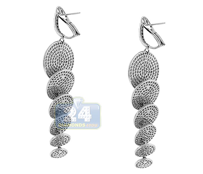 14K White Gold 7.53 ct Diamond Graduated Disc Drop Earrings