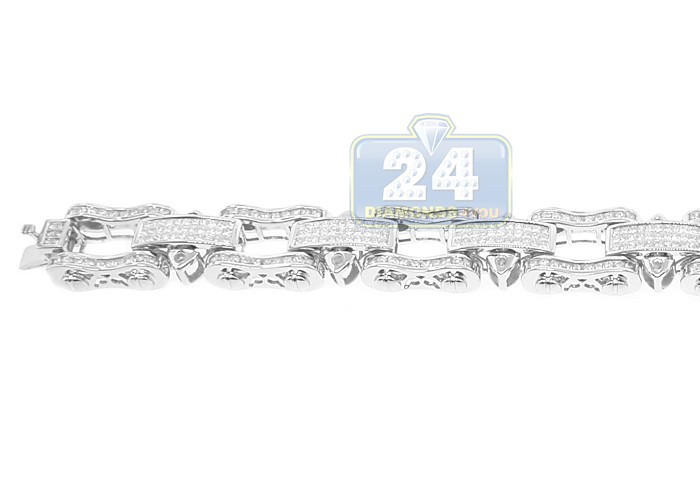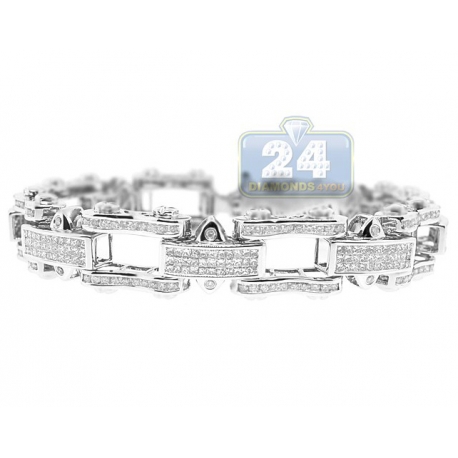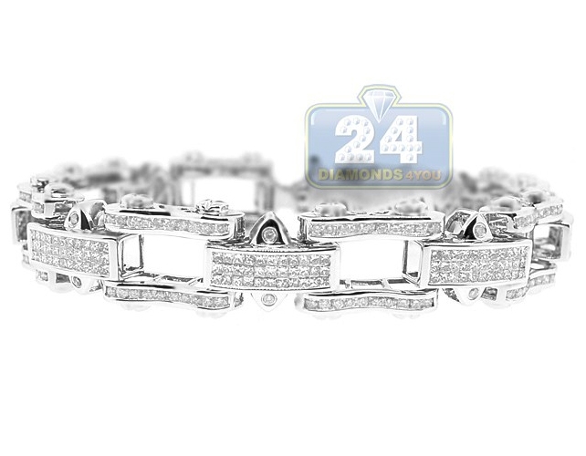 14K White Gold 8.60 ct Diamond Bicycle Link Mens Bracelet
