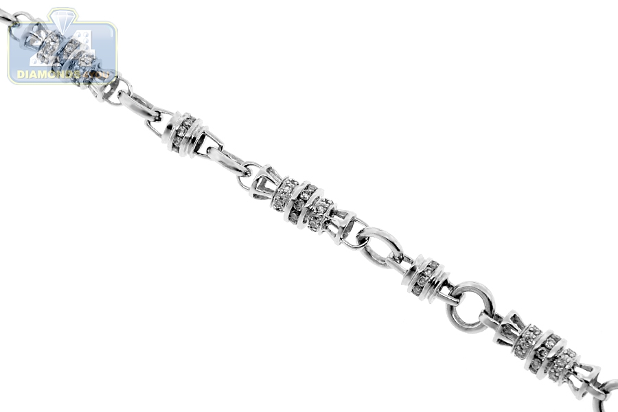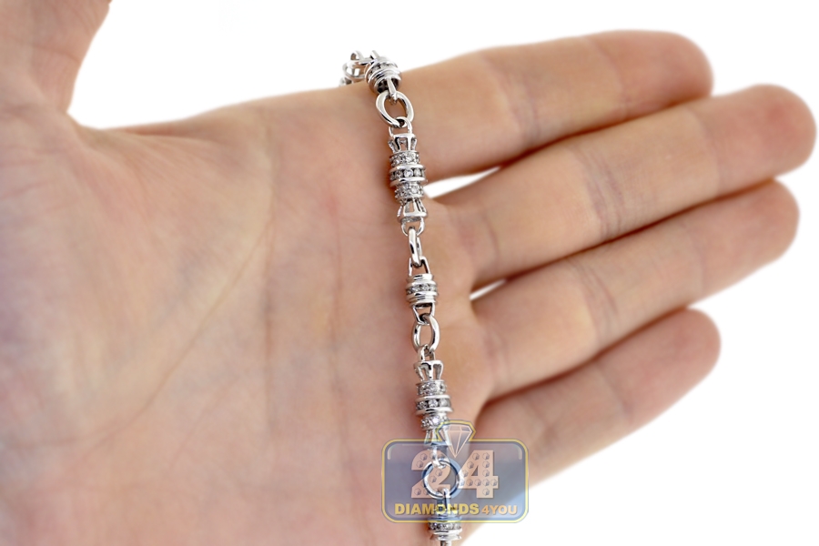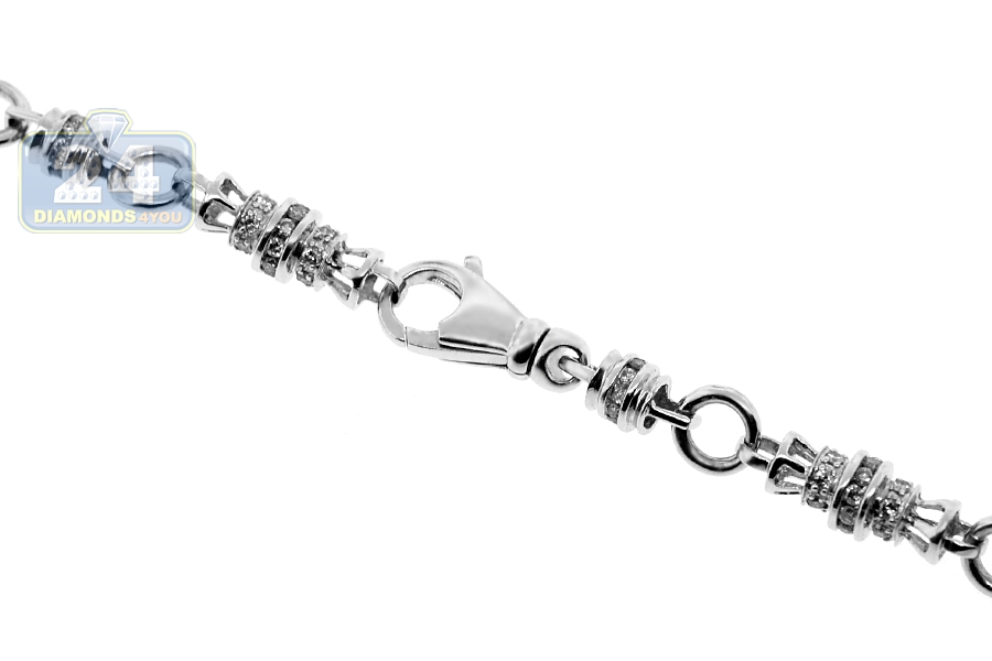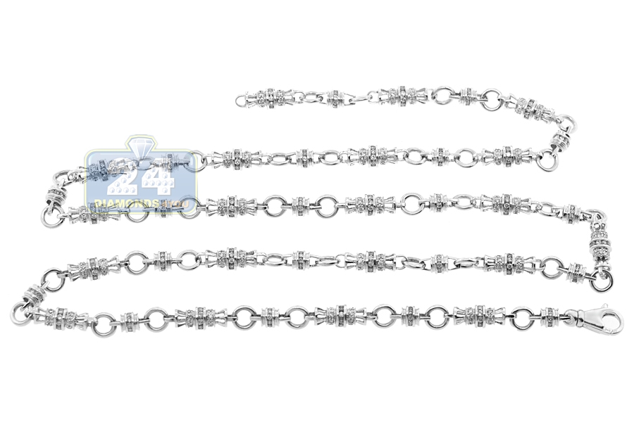 14K White Gold 8.78 ct Diamond Custom Bead Link Mens Chain