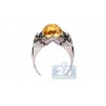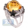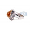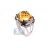 14K White Gold 8.75 ct Yellow Citrine Diamond Floral Cocktail Ring