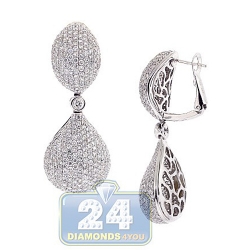 14K White Gold 9.10 ct Diamond Womens Teardrop Dangle Earrings